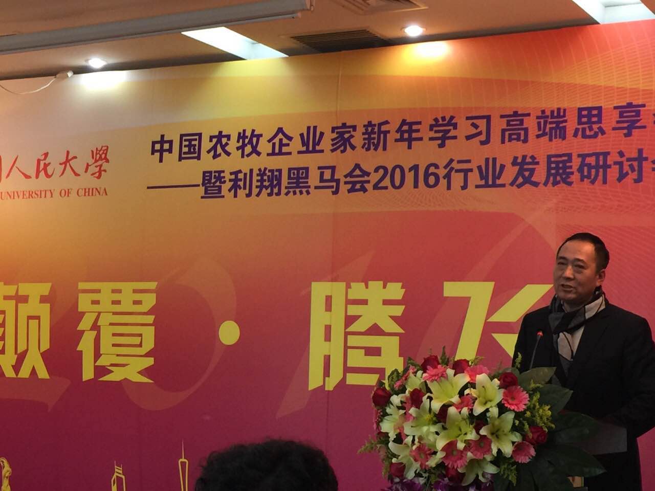 2016中國農(nóng)牧企業(yè)家新年學(xué)習(xí)高端思享會 暨利翔黑馬會2016行業(yè)發(fā)展研討會勝利召開 —— 張利庠教授:跨界思維顛覆行業(yè)思維 — 世界是一個(gè)系統(tǒng)、不是一個(gè)專業(yè);消費(fèi)綁架生產(chǎn)、金融決定實(shí)業(yè)、系統(tǒng)大于專業(yè);文化和心態(tài)顛覆技術(shù)和生存 — 從“取勢”到“明道”,不僅是賺錢、還要為全人類面臨的重大挑戰(zhàn)提出解決方案,從浮躁到安穩(wěn),企業(yè)家應(yīng)該為興趣、為理想、為夢想而創(chuàng)業(yè)創(chuàng)新,"明道"未來!會上和農(nóng)牧業(yè)集團(tuán)董事長方彥明先生也作了精彩分享!