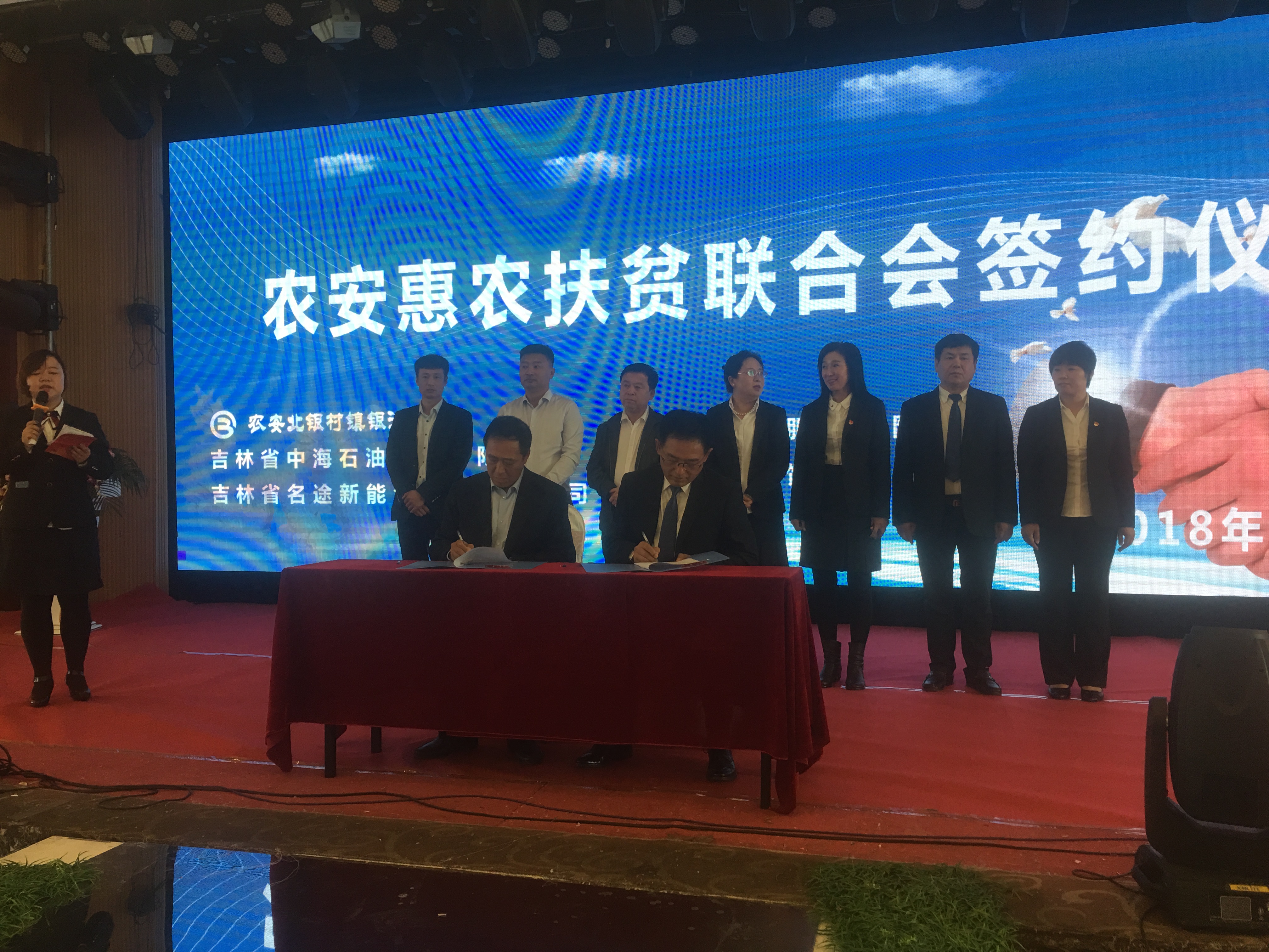 在會議上進(jìn)行了農(nóng)安惠農(nóng)扶貧聯(lián)合會簽約儀式,和農(nóng)牧業(yè)集團(tuán)董事長方彥明先生與農(nóng)安北銀村鎮(zhèn)銀行行長范雨新先生現(xiàn)場簽約合作。