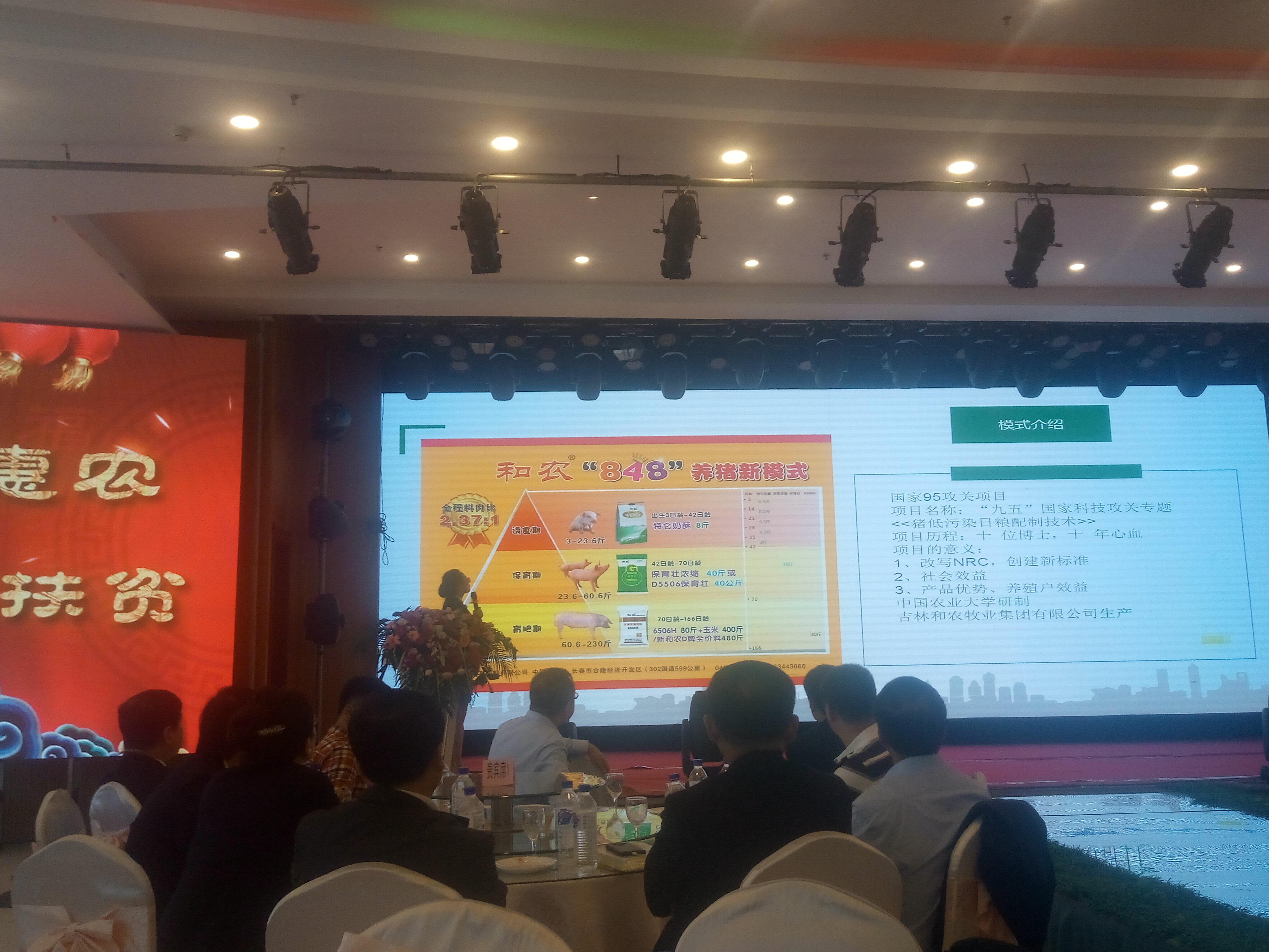 隨后和農(nóng)牧業(yè)集團(tuán)人力資源總經(jīng)理王瑛輝女士介紹了集團(tuán)公司簡介和優(yōu)勢產(chǎn)品“和農(nóng)848養(yǎng)豬新模式”,著重介紹了黑母豬養(yǎng)殖戶放養(yǎng)和仔豬回購的項(xiàng)目,并同時(shí)提供的服務(wù)與現(xiàn)場參會的朋友們進(jìn)行了充分的分享與解讀。